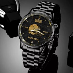This stylish timepiece is unique, made with precision, and is the perfect accessory for any true Cleveland Browns supporter. The sleek black design paired with the bold Cleveland Browns emblem makes it a standout piece that showcases your team pride with elegance and edge.