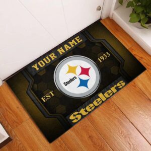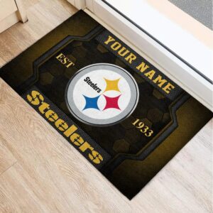 This doormat is unique, made with love, and is the perfect way to welcome guests to your home while showing off your team spirit. The Pittsburgh Steelers logo paired with the fun and iconic design makes it a delightful must-have for any Pittsburgh Steelers fan.