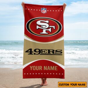 Hi there!! Are you checking out our Custom Your Name With San Francisco 49ers Summer Beach Towel Edition? This exclusive towel is designed with passion and precision, making it a must-have for any true San Francisco 49ers fan.