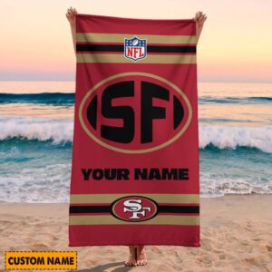 Hi there!! Are you checking out our Custom Your Name With San Francisco 49ers Summer Beach Towel Edition? This exclusive towel is designed with passion and precision, making it a must-have for any true San Francisco 49ers fan.
