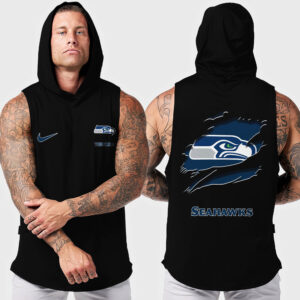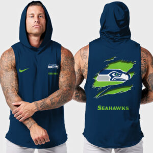This sleeveless hoodie is unique, made with dedication, and is the perfect gear to elevate your workouts while showing off your Seattle Seahawks pride. The Seattle Seahawk semblem combined with a sleek, athletic cut makes it a must-have for any Seattle Seahawks fan who wants to stay active and stylish.