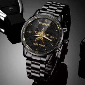 This stylish timepiece is unique, made with precision, and is the perfect accessory for any true Dallas Cowboys supporter. The sleek black design paired with the bold Dallas Cowboys emblem makes it a standout piece that showcases your team pride with elegance and edge.