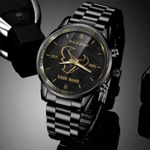 This stylish timepiece is unique, made with precision, and is the perfect accessory for any true Houston Texans supporter. The sleek black design paired with the bold Houston Texans emblem makes it a standout piece that showcases your team pride with elegance and edge.