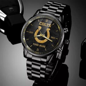 This stylish timepiece is unique, made with precision, and is the perfect accessory for any true Indianapolis Colts supporter. The sleek black design paired with the bold Indianapolis Colts emblem makes it a standout piece that showcases your team pride with elegance and edge.
