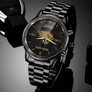 This stylish timepiece is unique, made with precision, and is the perfect accessory for any true Jacksonville Jaguars supporter. The sleek black design paired with the bold Jacksonville Jaguars emblem makes it a standout piece that showcases your team pride with elegance and edge.