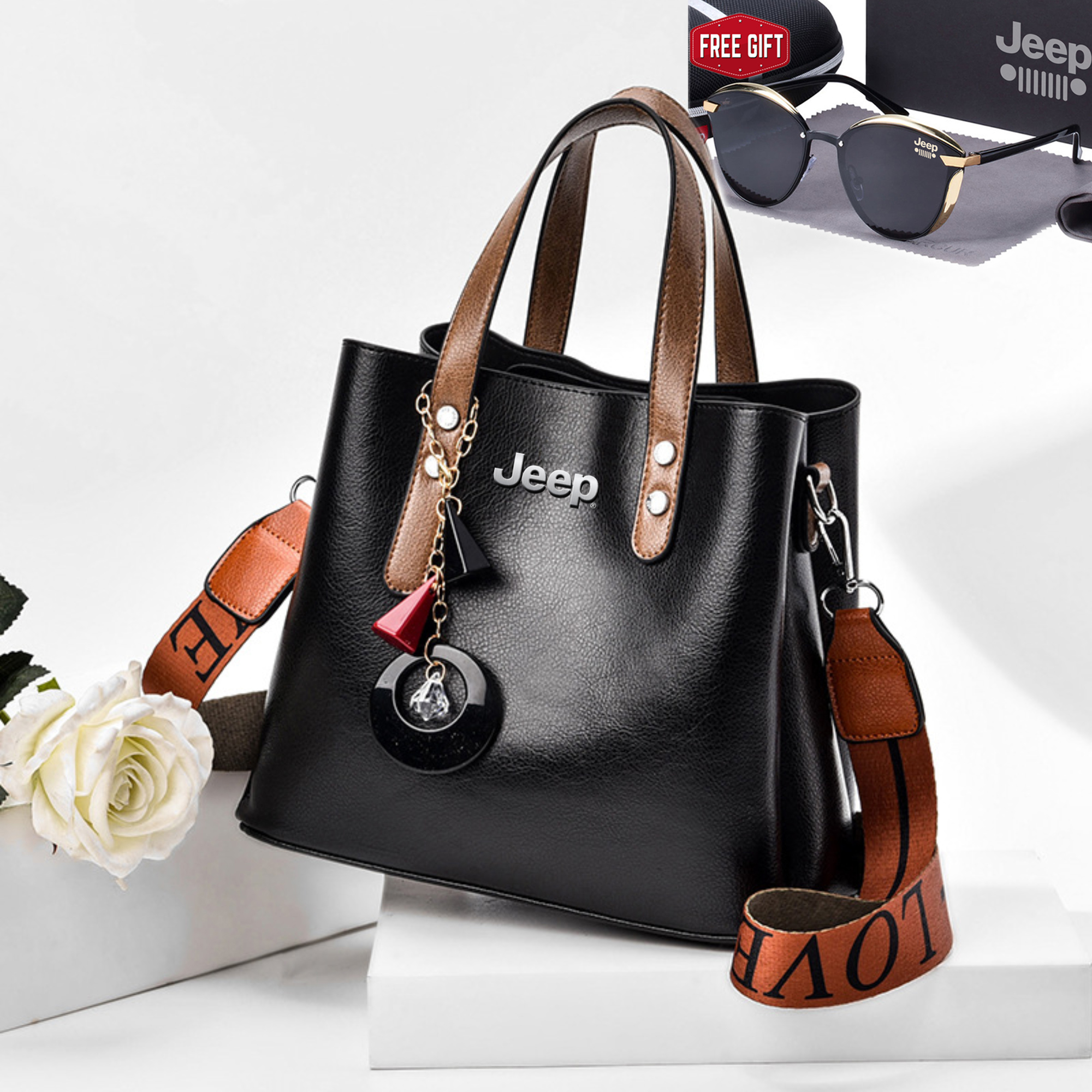 Jeep Luxury Leather Women Handbag with Free Polarized Glasses Gift