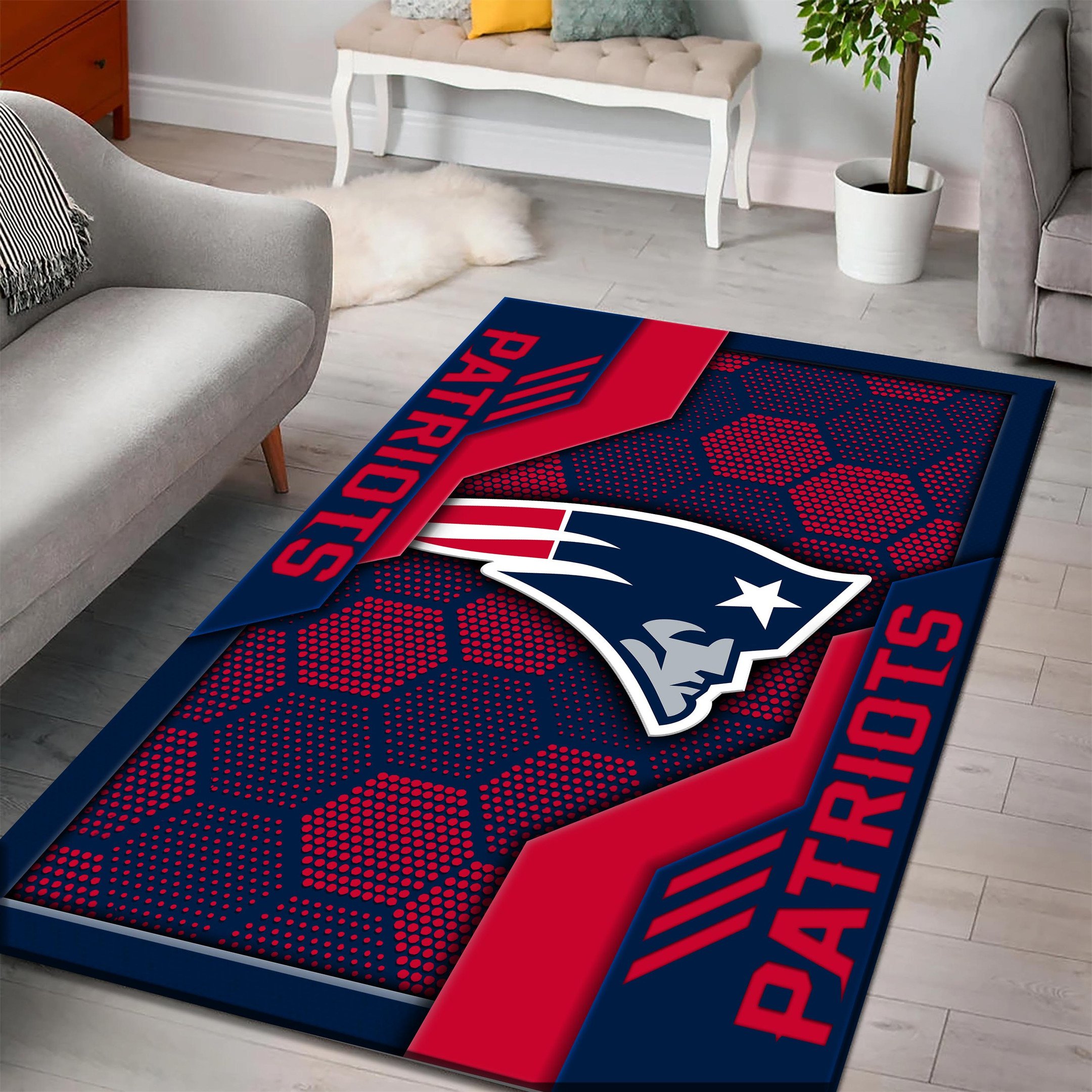 Hi there!! Are you looking at our New England Patriots Living Room Rugs. These Living Room Rugs are unique, made with love, and they are perfect accessories for your living room. The New England Patriots Emblem on the rugs makes it a perfect item for any New England Patriots Lovers.