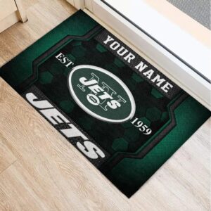 This doormat is unique, made with love, and is the perfect way to welcome guests to your home while showing off your team spirit. The New York Jets logo paired with the fun and iconic design makes it a delightful must-have for any New York Jets fan.