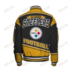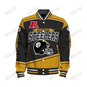 Hi there!! Are you looking at our Pittsburgh Steelers jacket. These jackets are unique, made with love, and they are perfect accessories for your outfit. The Pittsburgh Steelers Emblem on the jackets makes it a perfect item for any Pittsburgh Steelers Lovers.