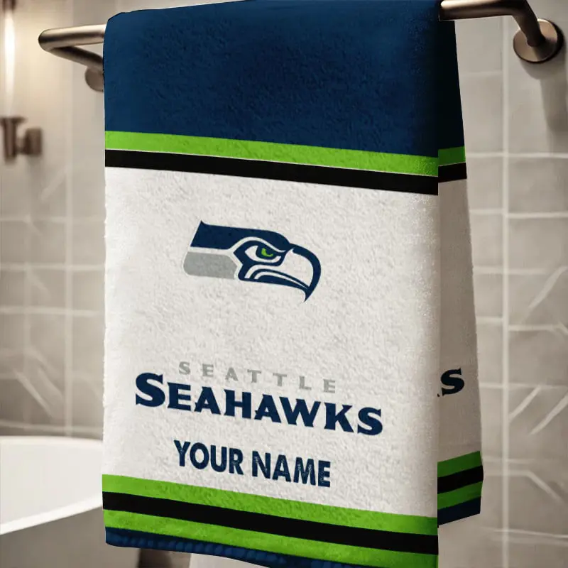 This personalized bath towel is unique, made with care, and is the perfect gift for any Seattle Seahawks fan looking to bring team pride into everyday life. The Seattle Seahawks emblem printed on a soft, high-quality towel makes it a fun and functional item for home, gym, beach, or game-day showers.