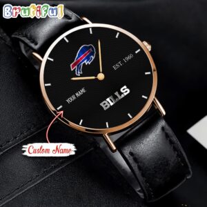BUBI Watch Custom Name Black Stitched Leather Watch
